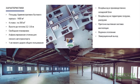 Здание состоит из складской и примыкающей офисной зоны. Складская часть (S-5750м2) : три этажа , два грузовых подъемника( с возможностью подъёма электрокары и груза одновременно) , грузоподъёмность каждого более 5 тонн!!!. Современные система отопления , пожаротушения, вентиляции. Светодиодное освещение! Покрытие полов - Анти-пыль! Современное оснащение зоны погрузки- разгрузки крупнотоннажных и среднетоннажных грузовиков! Административно- офисная часть(S-1350м2): четыре этажа свободной планировки.